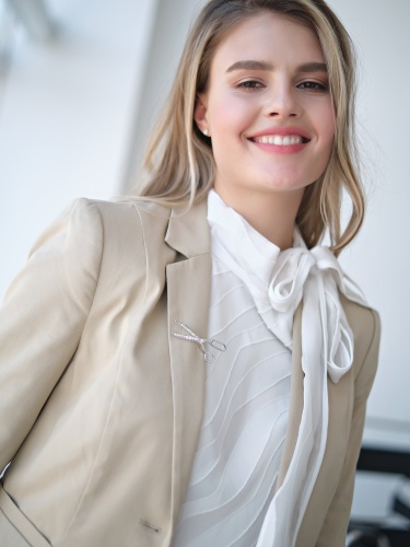 Оригинальная брошь в виде ножниц станет стильной деталью вашего образа. Брошь украшена стразами.
