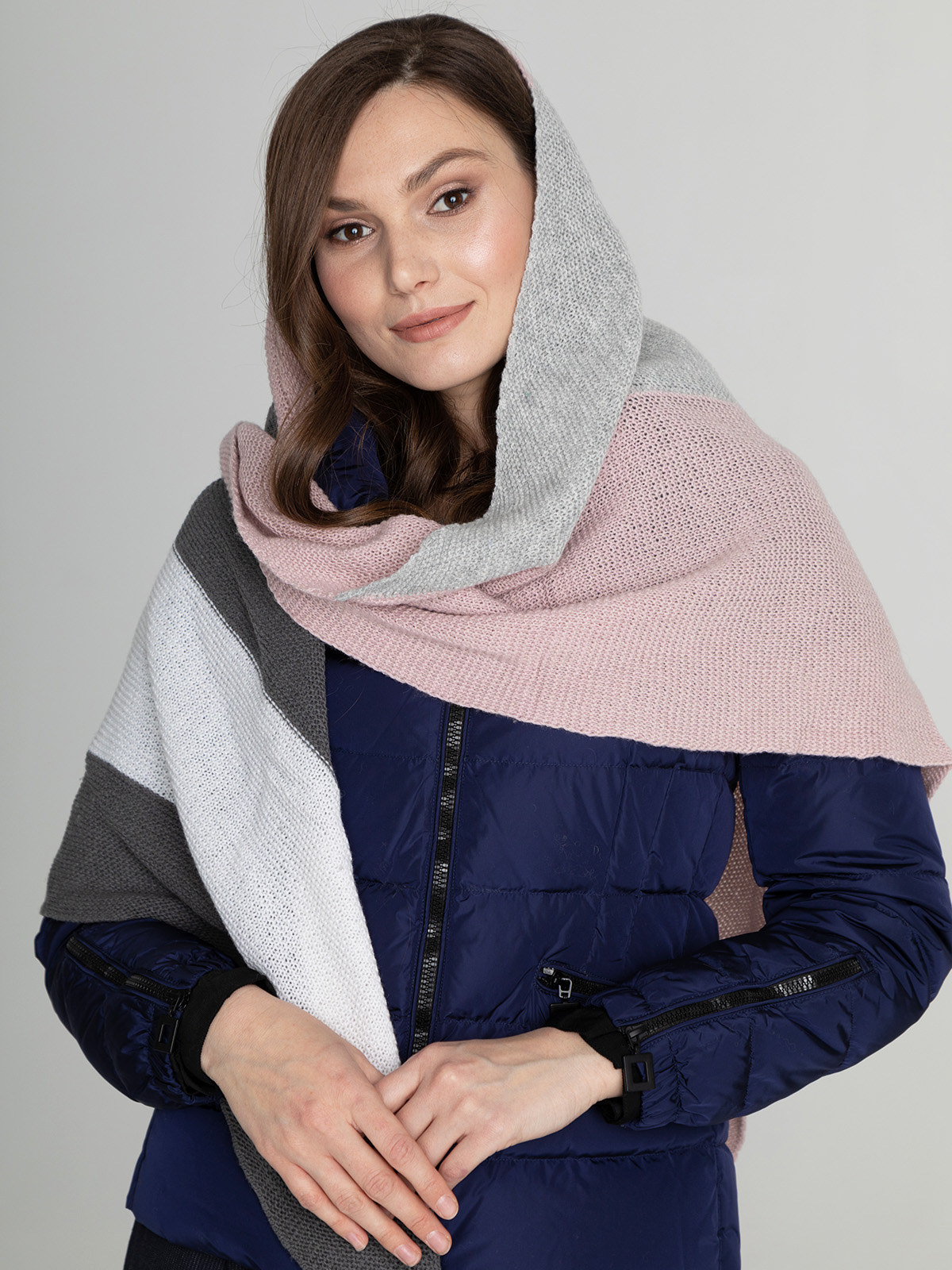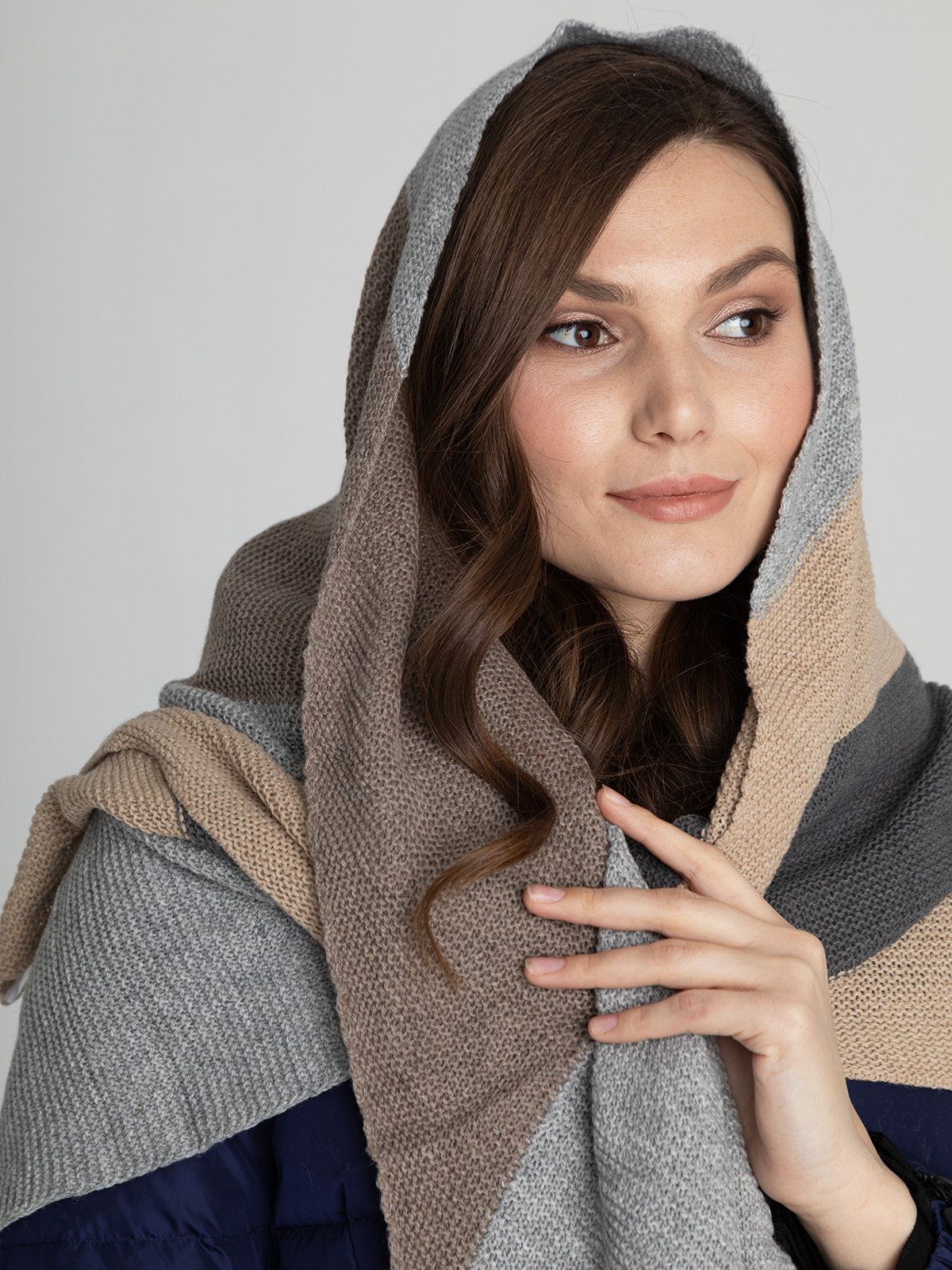 Косынка из смесовой шерсти с добавлением кашемира приятна на ощупь и хорошо сохраняет тепло. Универсальная базовая модель легко сочетается с различными нарядами.