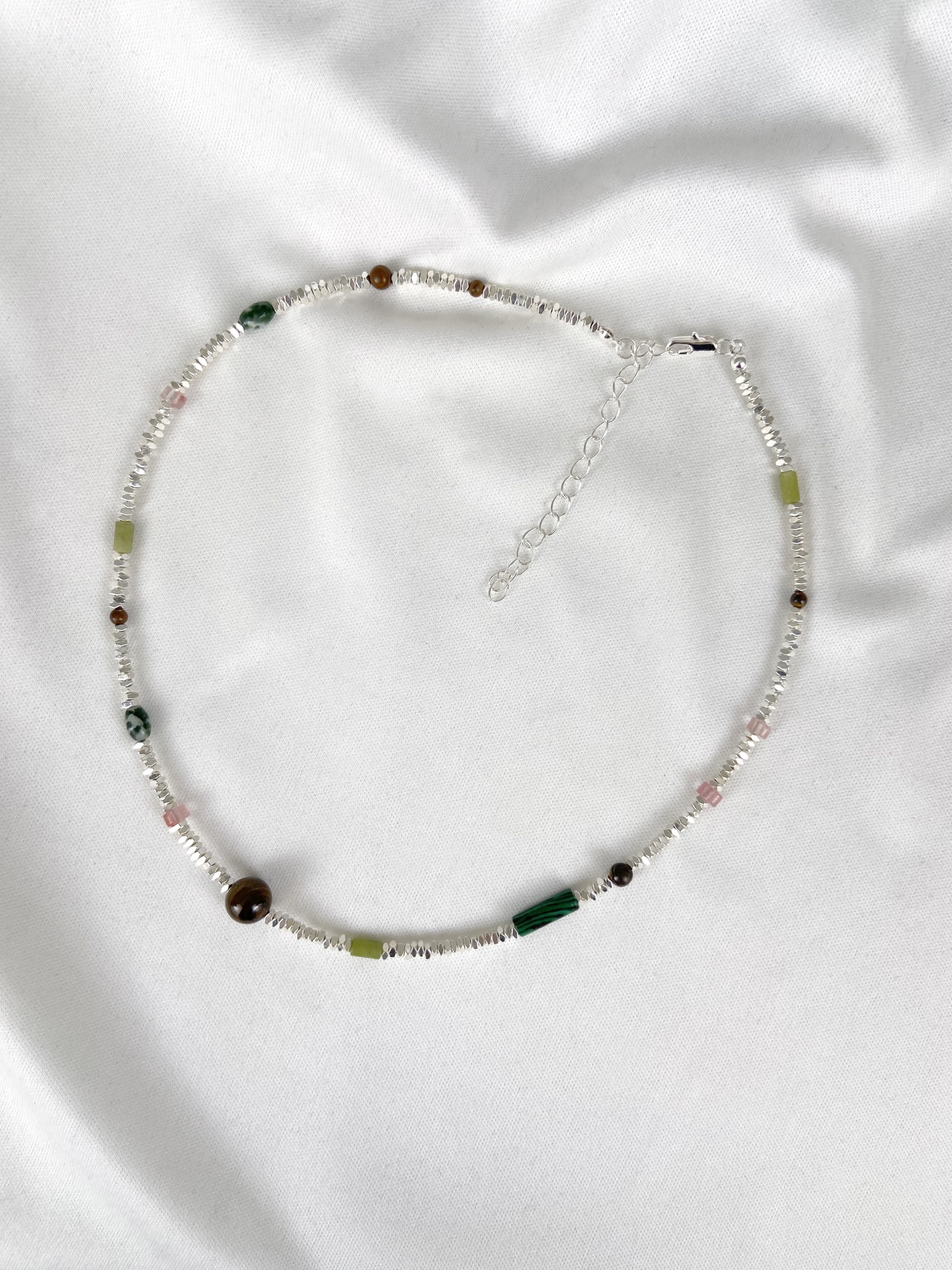 Элегантное колье с использованием искусственного разового кварца с регулируемой застёжкой, станет изысканным акцентом любого наряда.