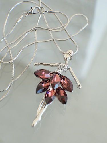 Украшение-подвеска создает изящный и женственный образ. Изделие выполнено из комбинированных материалов с использованием вставок горного хрусталя.