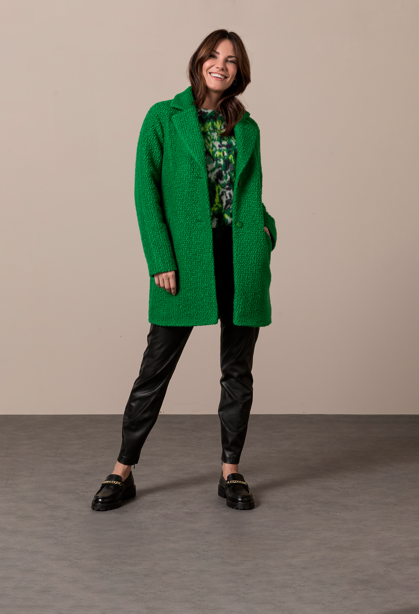 На сайте указаны российские размеры. Короткое пальто с грубой структурой ткани и модного цвета придаст каждому образу что-то особенное. Высококачественная смесь материалов с овечьей шерстью согревает и удобна в носке. Привлекательность дополняется широким воротником с лацканами, двумя большими пуговицами и тонкими боковыми карманами. Будь то повседневный или шикарный - с этим пальто каждый осенне-зимний наряд будет идеальным. Длина модели в 44 размере около 84 см.