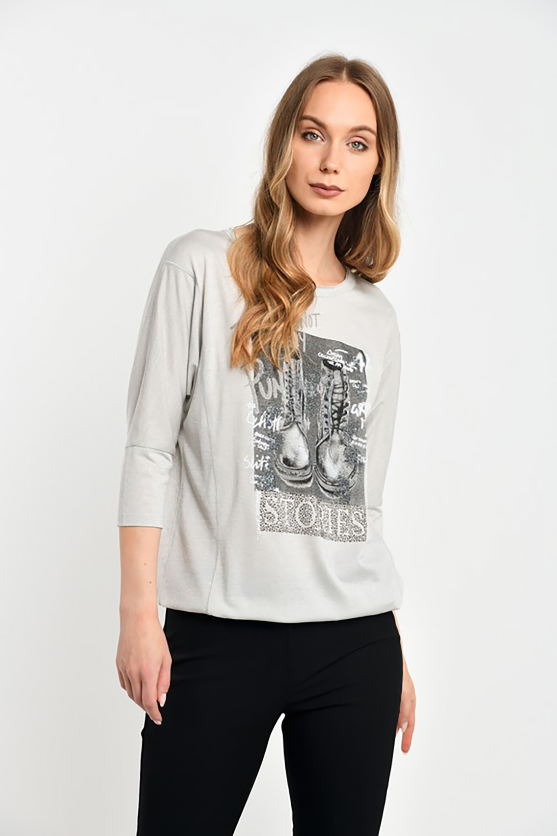 Свитшон свободного силуэта – практичный и стильный элемент повседневного стиля. Круглая горловина, втачной рукав 3/4 со спущенной линией плеча, широкие манжеты.