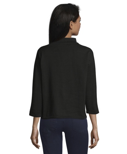 Джемпер прямого покроя - обязательная вещь в любом гардеробе! Горловина "воронка", рукава 3/4 со спущенным плечом. Яркая деталь дизайна - цветок, выполненный нитью контрастного цвета. Россыпь страз придает образу гламурный блеск. Материал из хлопковой смеси приятен к телу. Джемпер прекрасно сочетается с любым однотонным вариантом низа и любой обувью.