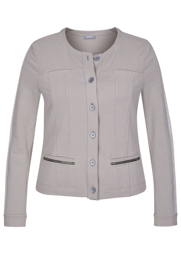 Светлый жакет - отличный вариант классического верха. Хлопковый материал с примесью эластана обеспечивает комфорт и отличную посадку. Слегка приталенный силуэт, пуговичная планка и длинные рукава с манжетами - то, что нужно для отличного дизайна. Эта модель удачно сочетается как с брюками, так и с юбкой, а спокойный цвет делает эту модель базовой и универсальной.