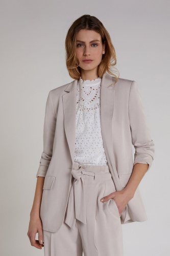 Однотонный жакет - универсальная модель гардероба. Слегка приталенный силуэт. Отложной воротник с лацканами, застежка на пуговице. Вискозный материал приятен к телу и обеспечивает комфорт. Эта модель лаконична по дизайну, что делает ее базой как для делового, так и для повседневного образа.