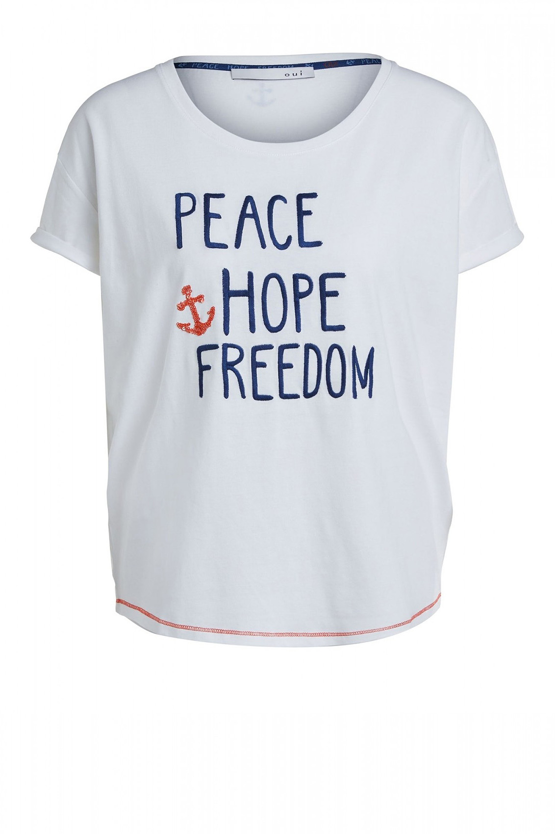 Для тех, кто скучает по морю! Футболка с вышивкой и пайетками. Модный свободный крой. Широкий круглый вырез горловины, короткие рукава со спущенным плечом. Контрастная отстрочка по низу изделия. Хлопковый материал приятен к телу и обеспечивает комфорт. Эта футболка - прекрасный компаньон для образа как с брюками, так и с юбкой.