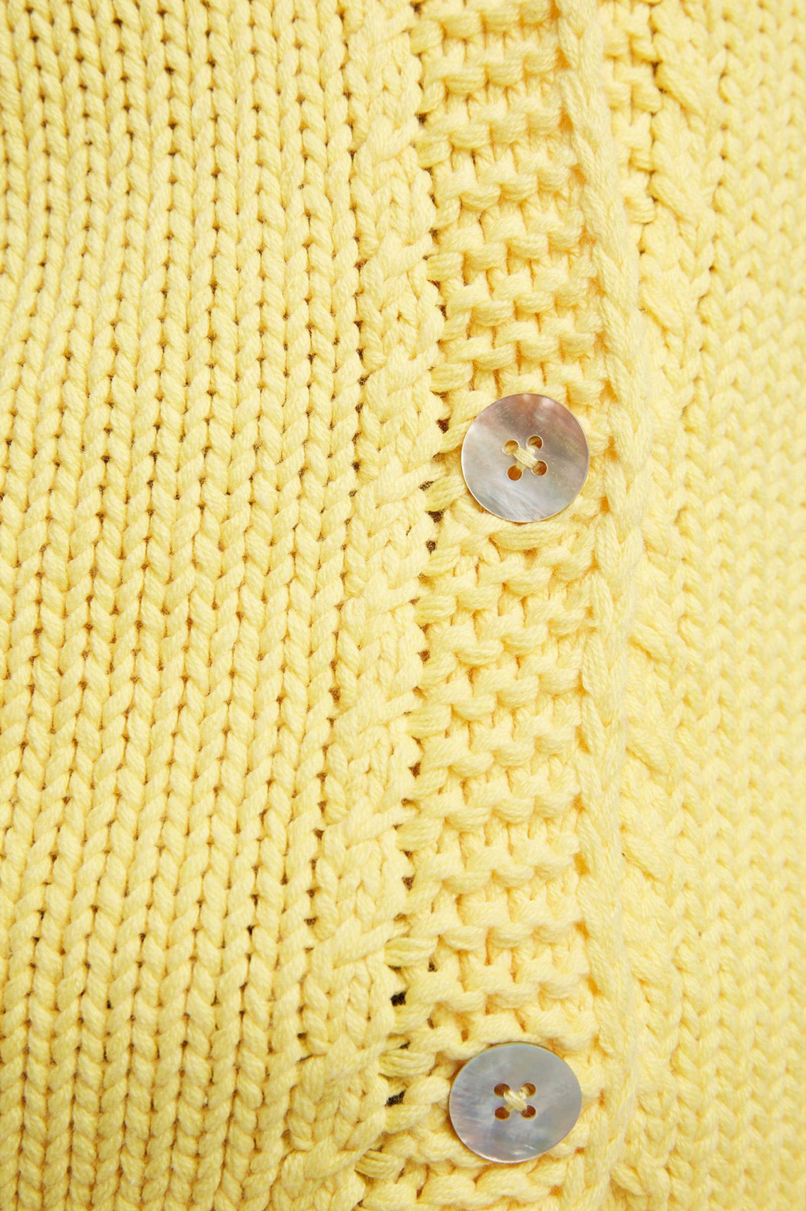 Яркий кардиган непременно обратит на себя внимание! Прямой покрой, длинные рукава, застежка на пуговицах. Крупная вязка с косами. Приятный к телу материал из смеси хлопка и полиакрила. Этот кардиган - модная теплая вещь, необходимая в любом гардеробе.