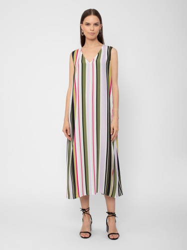 Платье из вискозы в принте полуприлегающего силуэта без рукавов с v-образным вырезом горловины.
