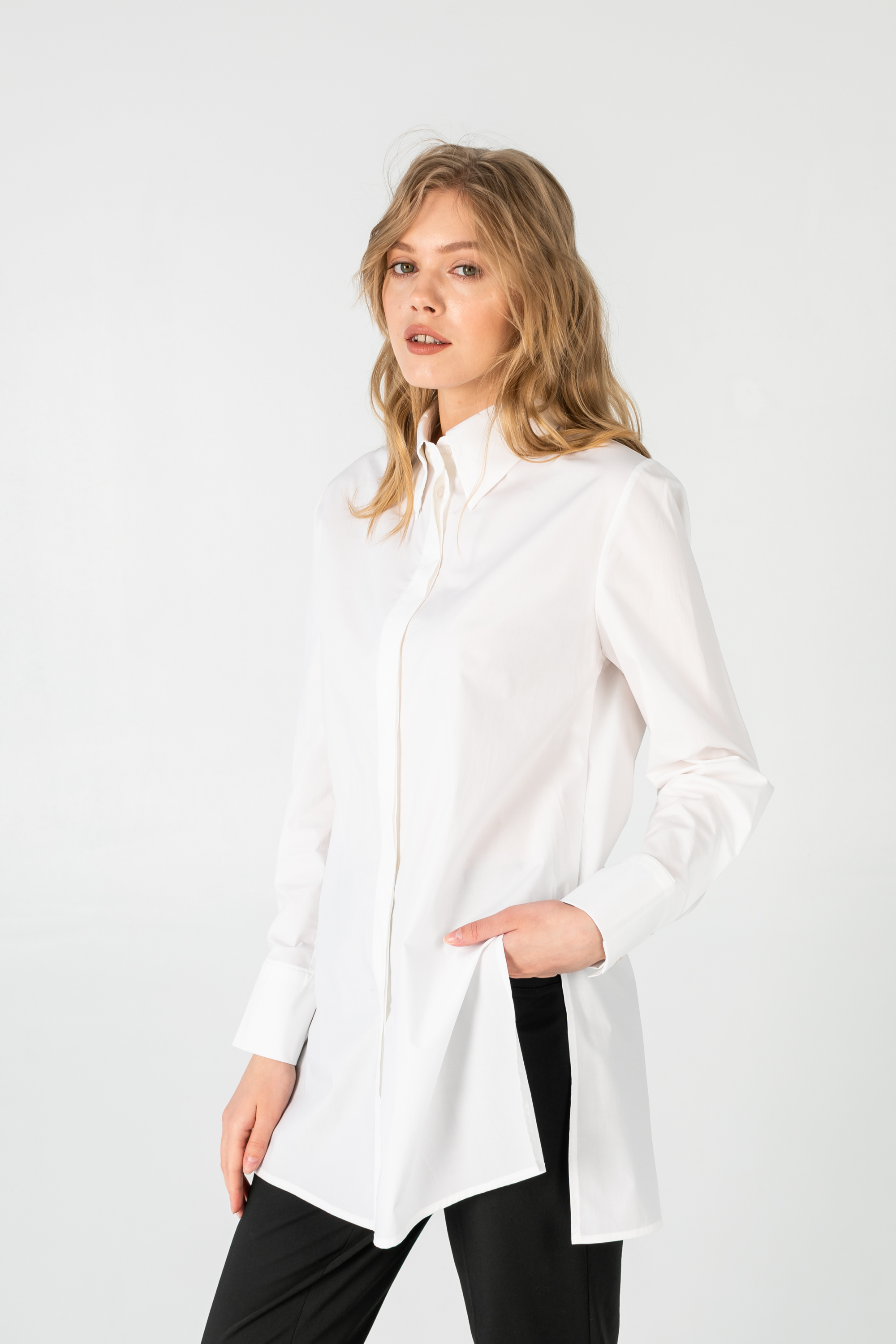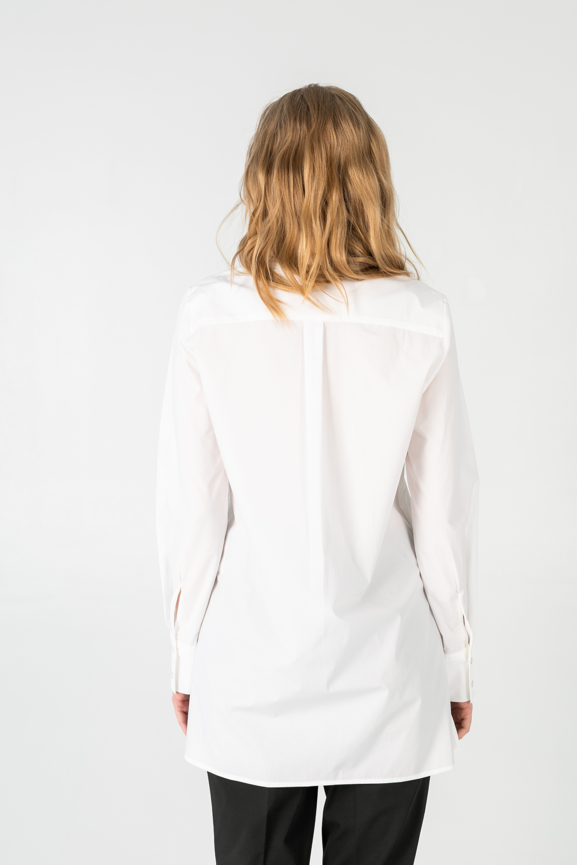 Классическая удлиненная оверсайз рубашка с защипом на спине.