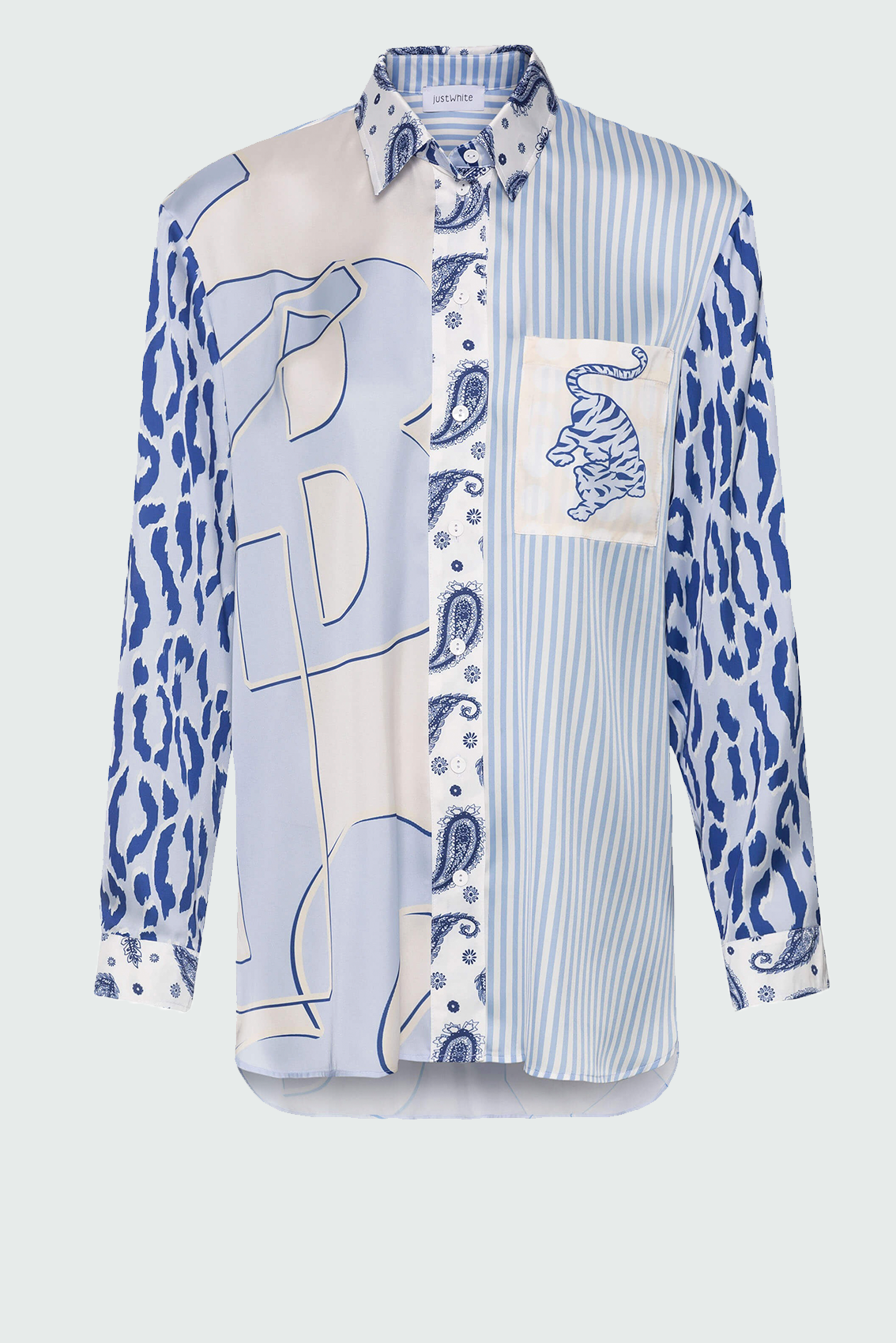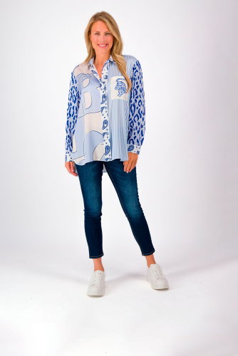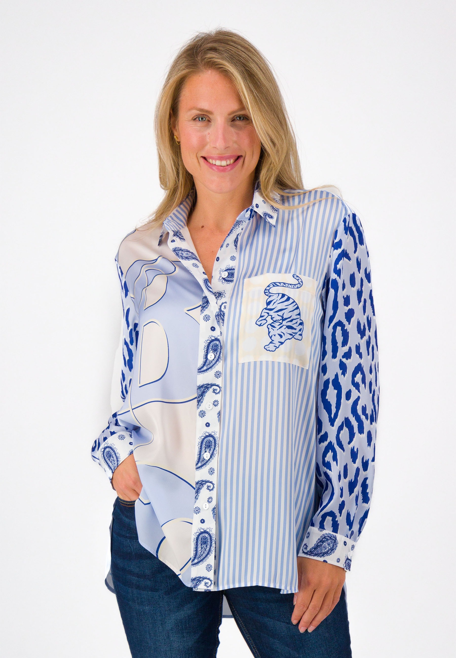 Изюминка текущего сезона: эта красивая блуза с рубашечным воротником притягивает взгляды и превращает каждый образ в нечто особенное! Блузка с длинными рукавами впечатляет захватывающим сплошным принтом. Здесь множество различных дизайнов идеально гармонируют друг с другом. Слегка удлиненная задняя часть в сочетании с высококачественным материалом из 100% вискозы обеспечивает легкость блузки. Обращает на себя внимание детальный принт на спине, который можно найти и на нагрудном кармане.