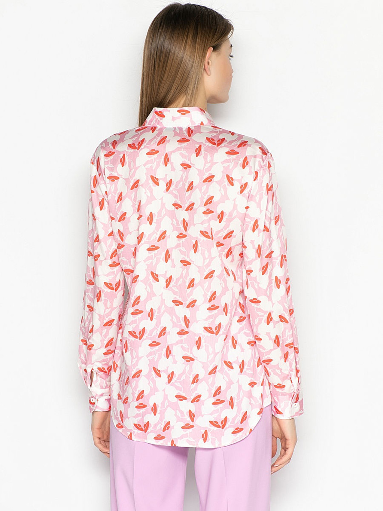 Блузка-рубашка привлекает к себе внимание благодаря необычному принту. Приталенный силуэт, отложной воротничок, застежка на пуговицах, длинные рукава с манжетами. Материал блузки обеспечивает удобство и комфорт в ношении. Эта блузка освежает любой образ!