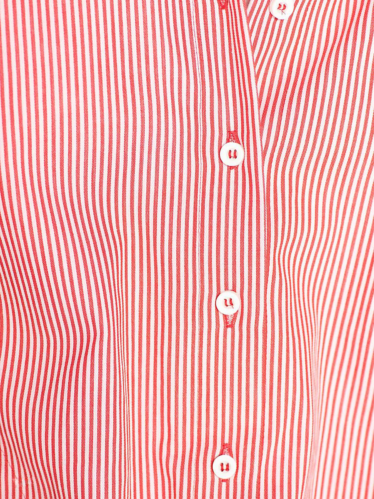 Удлиненная блузка в полоску. Слегка приталенный силуэт, отложной воротничок, застежка на пуговицах, длинные рукава. Отделка тесьмой на рукавах. Хлопковый материал блузки обеспечивает удобство и комфорт. Эта модель будет хороша как с классическими брюками, так и с джинсами.
