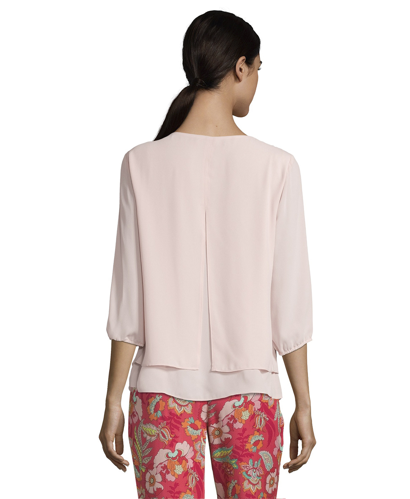 Свобода в тренде! Летящая блуза. Оригинальный крой этой двухслойной модели создает красивые драпировки. Круглый вырез горловины, рукава 3/4. Эта блуза создает романтический образ как с юбкой, так и с брюками.