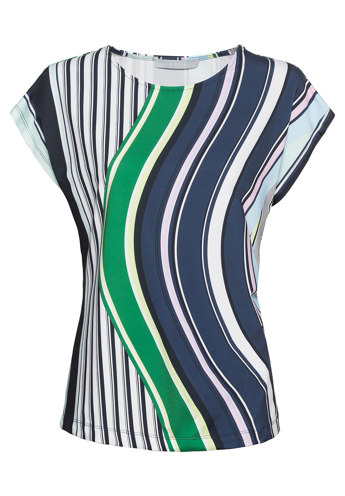 Полосы повсюду - модные акценты с блузой Julie! Блуза имеет стильный дизайн в полоску и подходит для любого случая. Легкая в уходе мягкая ткань джерси с эластаном очень удобна в ношении. Цветные полосы и складки сбоку создают вау-эффект. Цельнокроеные рукава и круглый вырез горловины придают изделию завершенный вид. • блуза с цветными полосами и складками сбоку • легкая в уходе ткань джерси с эластаном • круглый вырез, цельнокроеный рукав • слегка приталенный силуэт • длина около 64 см