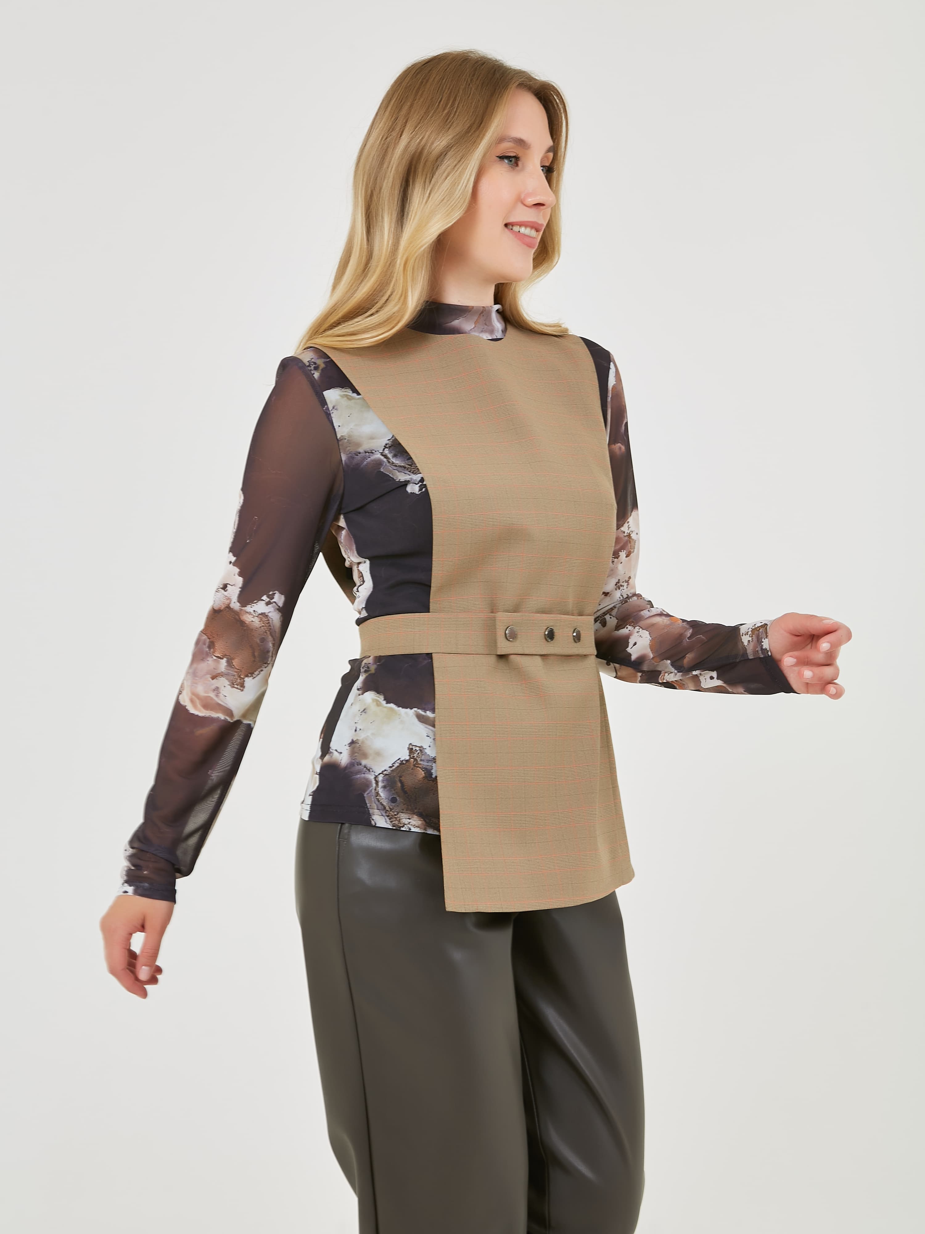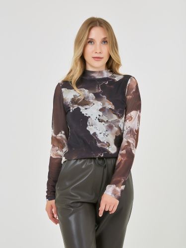 Сетчатая водолазка с дымчатым принтом. Полупрозрачная фактура придаёт лёгкость и изящество. Коллекция Осень-Зима 2024-2025. Капсула "Крадущийся тигр, затаившийся дракон".