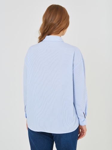 Классическая рабашка на пуговицах в вертикальную полоску. Украшена цветами из пайеток разных цветов. Коллекция Весна-Лето 2025. Капсула "Самарканд". Параметры модели: 95-64-101, рост 175, размер 44-46