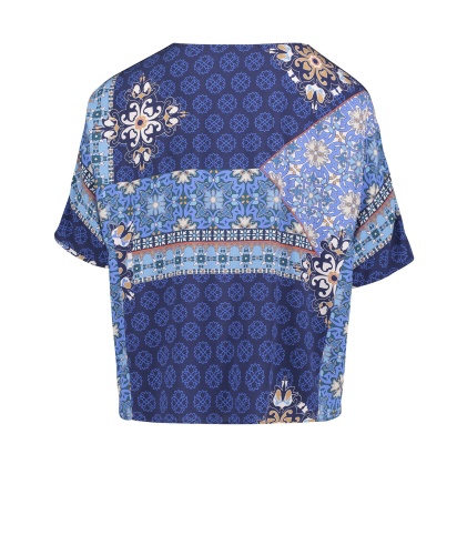 Свобода в тренде! Блуза свободного покроя с этническим орнаментом. Широкий круглый вырез горловины, рукава 1/2. Вискозный материал приятен к телу и обеспечивает максимальный комфорт. Эта модная блуза - отличный компаньон для любого однотонного варианта низа, будь то брюки или юбка.