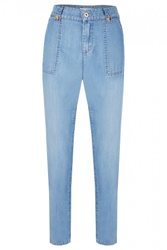 Комфорт на все случаи жизни! Брюки свободной формы чинос выполнены из 100% тенсела. Средняя посадка, 4 кармана с декоративной отстрочкой, контрастные пуговицы на шлевках. Идеальным довершением образа будет блуза-рубашка и туфли-лодочки.
