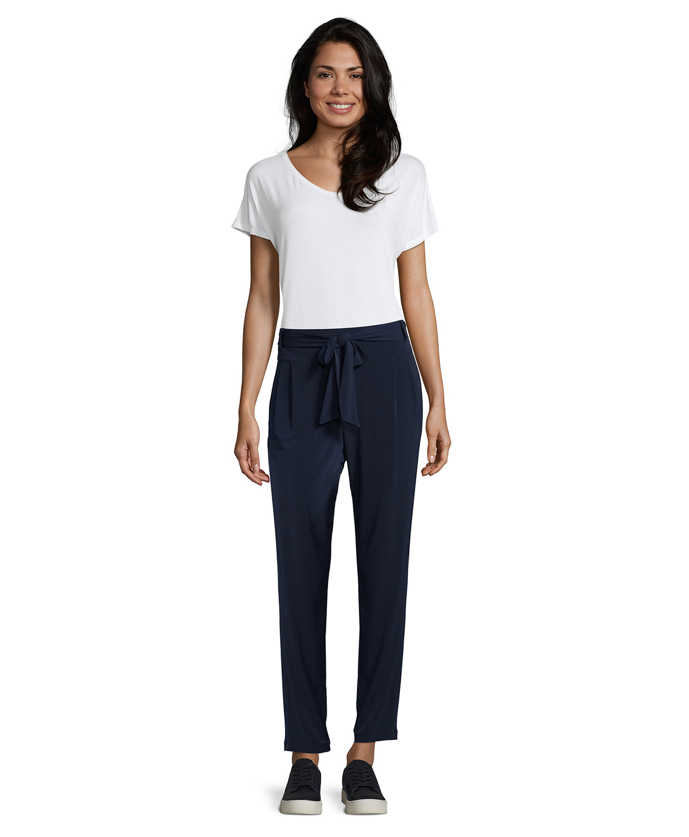 Брюки прямого кроя. Защипы на бедрах. Стильный акцент брюк - пояс-бант. Элегантная модель для офиса и выхода в свет!