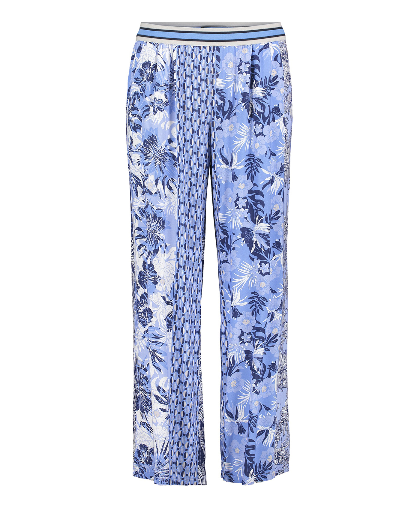 Широкие брюки в моде! Брюки средней посадки с эластиным поясом. Укороченная длина позволяет подчеркнуть модную обувь. Принт с сочетанием цветочных и графических мотивов обращает на себя внимание. Вискозный материал приятен к телу и обеспечивает максимальный комфорт. В сочетании с однотонной футболкой или блузкой эти брюки создают яркий современный образ.