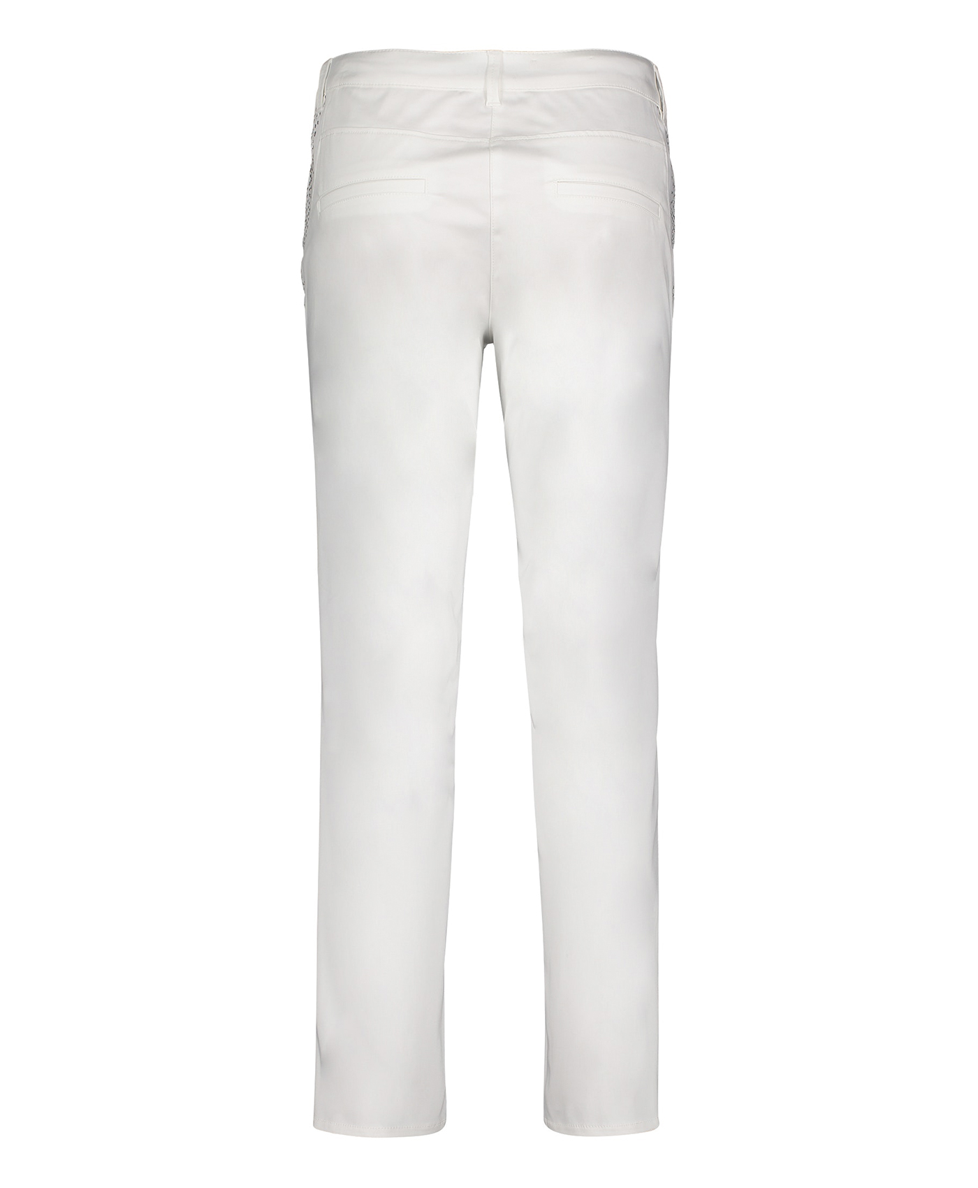 Укороченные брюки обращают на себя внимание. Универсальная средняя посадка, прямой крой. Небольшие разрезы по низу брючин. Декор стразами в области бедер придяет образу нотку гламура. Приятный к телу материал из хлопковой смеси обеспечивает комфорт в ношении. В сочетании как с футболкой, так и с блузой эти брюки создают стильный современный образ.