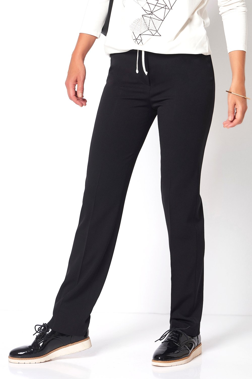 Прямые брюки - поистине универсальный вариант низа! Удобная средняя посадка, эластичный пояс, карманы спереди. Стрелки визуально вытягивают силуэт.