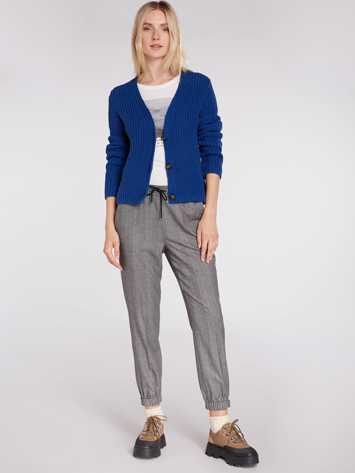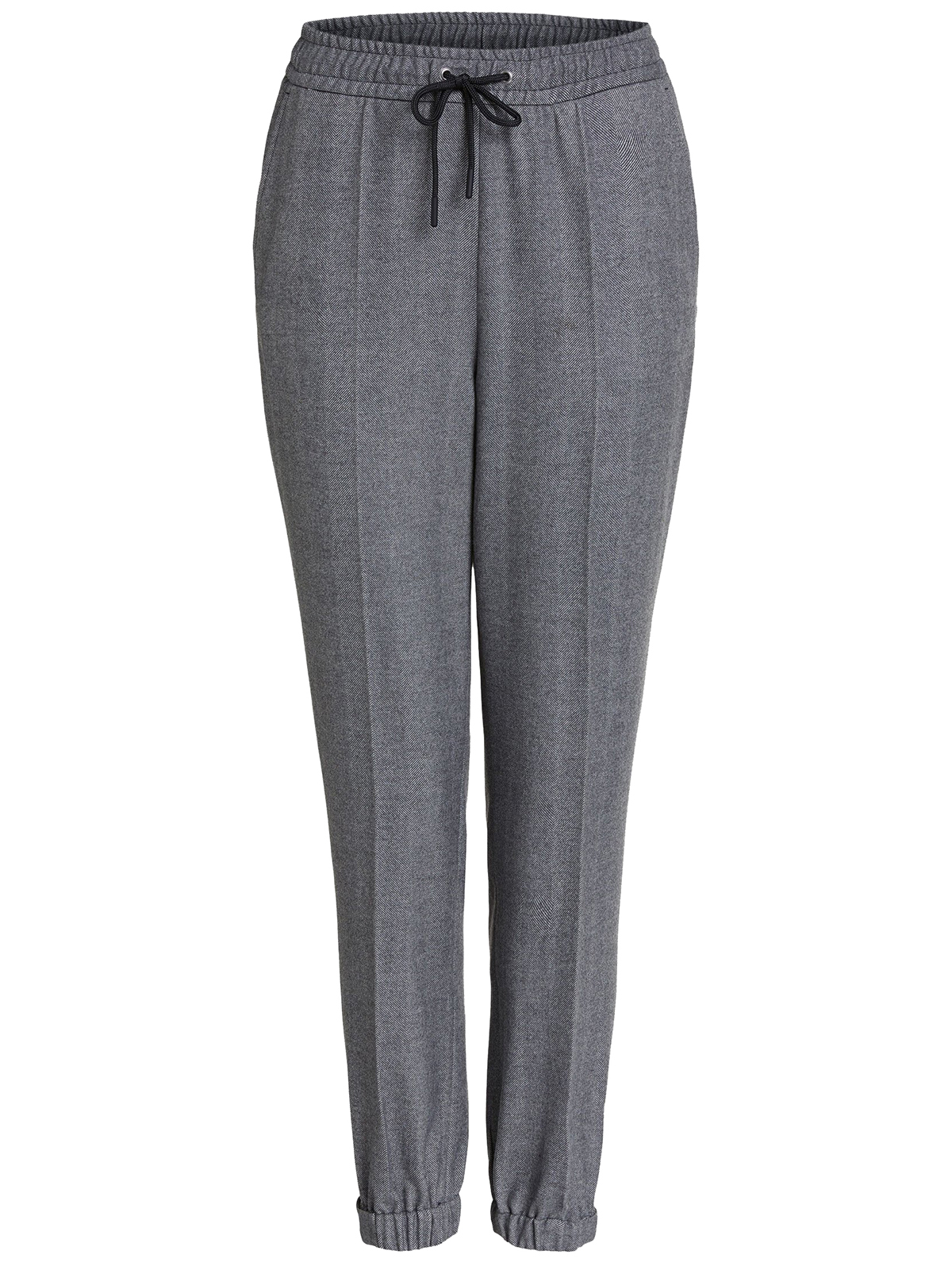Брюки прямого кроя со стрелками. Притачной эластичный пояс с кулиской, также эластичные резинки по низу брючин. Брюки комфортны в ношении и подойдут для образа в повседневном городском стиле.