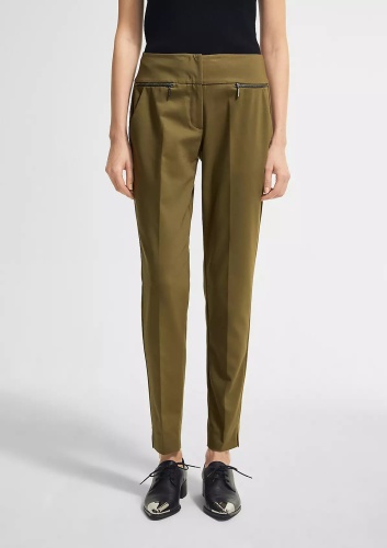 Прямые брюки со стрелками. Широкий притачной пояс без шлевок. Комфортная средняя посадка. Врезные карманы на молнии.