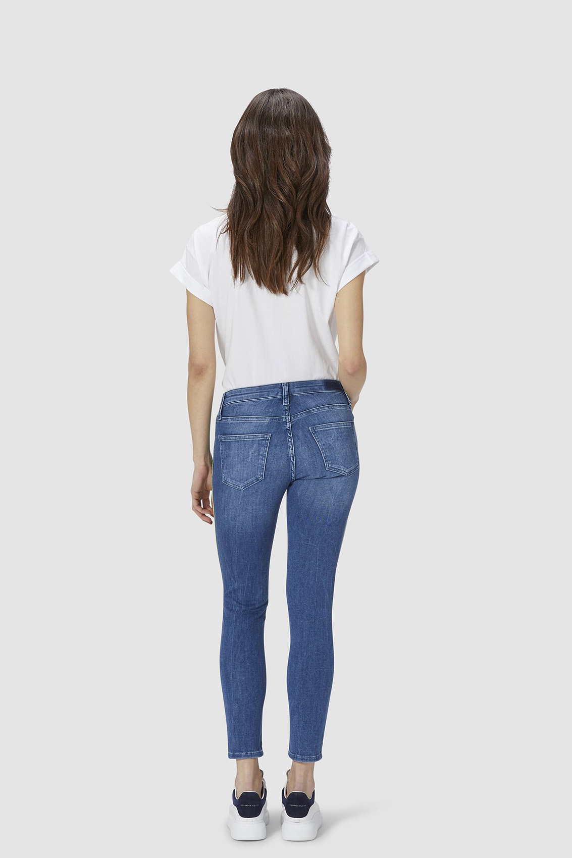 Супер-мягкие джинсы воплощают тренд на неоновые элементы очень элегантно - с тонкой тесьмой по бокам. С ними вы можете сделать модное заявление, которое не доминирует над общим образом. Средняя посадка, 5 карманов, силуэт брюк выгодно подчеркивает ноги. Стильная модель, изготовленная из итальянского денима премиум-класса, отлично подходит к различным вариантам верха: от объемных рубашек до нежных блузок.