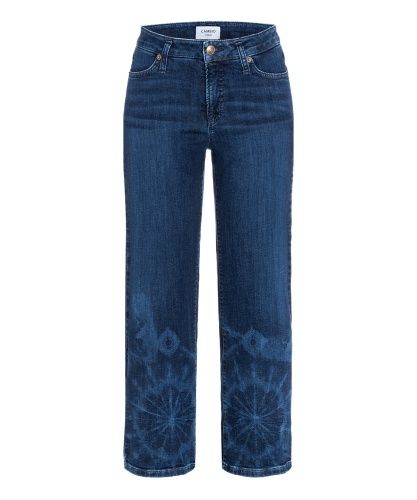 Широкие джинсы - неоспоримый тренд сезона! Джинсы средней посадки с потертостями в стиле тай-дай. Укороченная длина позволяет подчеркнуть модную обувь. Приятный к телу материал из хлопковой смеси обеспечивает комфорт. Эта модель - отличная пара для любого варианта верха, будь то облегающая водолазка или легкий топ.