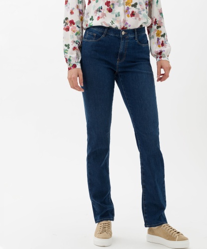 Однотонные темно-синие джинсы силуэта слим. Высокая посадка обеспечивает комфортное ношение. Пояс со шлевками, застежка на пуговицу и скрытую молнию. Врезные карманы спереди и два накладных кармана сзади.