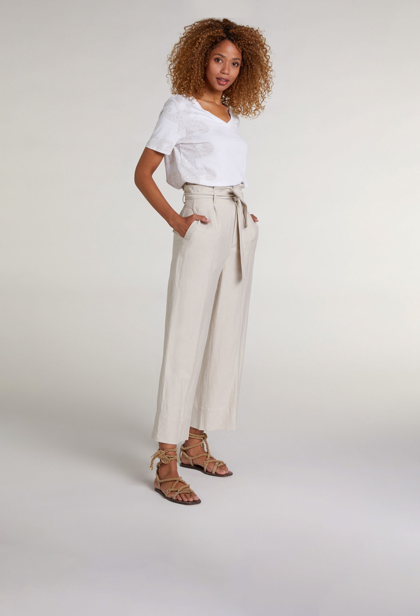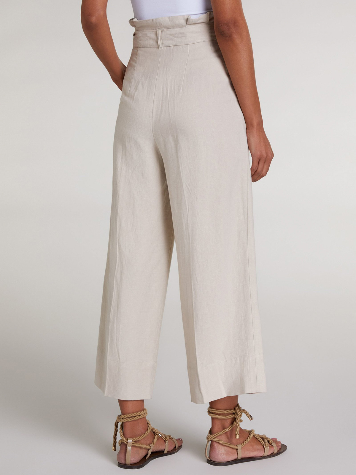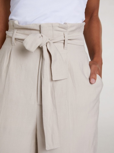 Широкие брюки в стиле кэжуал с завышенной посадкой. Свободный урой, фигурные вытачки.Материал из смеси вискозы и льна приятен к телу и обеспечивает правильную терморегуляцию. Можно сочетать с футболкой, джемпером или подходящим блейзером. Длина для размера 42: 66 см. Рост модели 176 см, на ней размер 44 (российский).