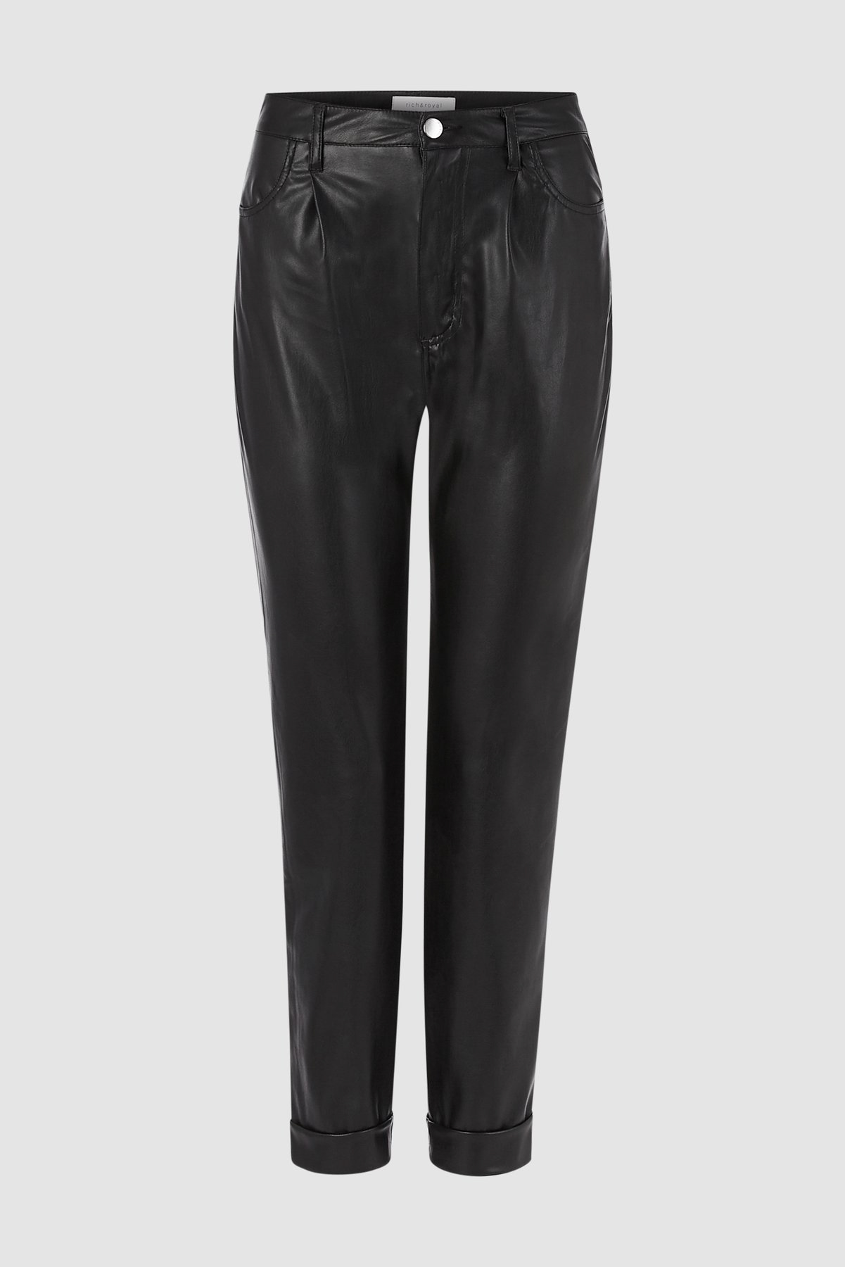 Укороченные брюки из экокожи свободного кроя. Дизайн включает удобные боковые карманы, практичные шлевки для ремня и застежку-молнию. Носите с женственными блузками и лодочками, чтобы создать шикарный деловой образ или с белыми кроссовками и футболкой для городского кэжуал стиля.