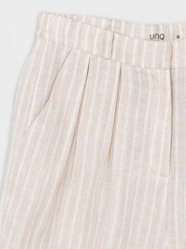 Шорты из 100%-го льна – всегда актуальная летняя классика городского повседневного стиля. Высокая посадка и фигурные вытачки обеспечивают комфортное ношение. Пояс со шлевками для фиксации ремня. Прорезные боковые карманы.