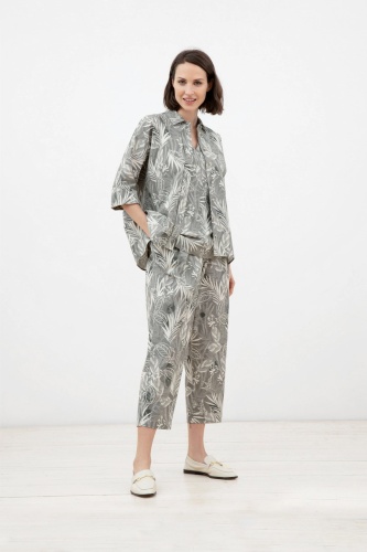 Брюки из хлопковой ткани силуэта "бананы", длиной 7/8, на притачном поясе из основной ткани. С защипами по линии пояса для наилучшей посадки. Имеют два комфортных боковых кармана.