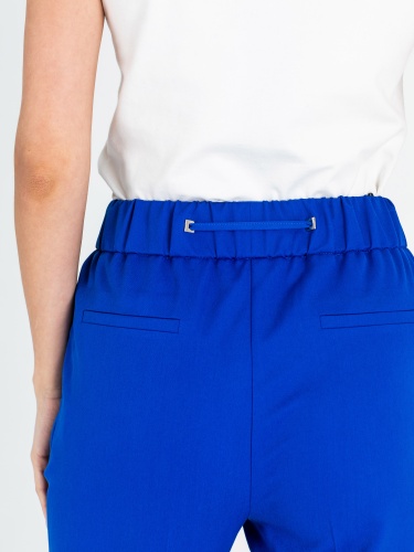 На сайте указаны российские размеры. Ткань: смесовая ткань средней плотности (72% полиэстер, 22% вискоза, 6% эластан). Идеальны для лета и весны. Крой: повседневные брюки в стиле спорт-шик – выбор активных женщин, для которых важен не только комфорт, но и внешний вид одежды. Имеют слегка прилегающий силуэт, подчеркивающий красоту фигуры. Модель с завышенной талией, прикрывает зону живота. Удобный пояс-резинка обеспечивает максимальный комфорт и надевание брюк в течение нескольких секунд. Отделка: модель с двумя функциональными прорезными карманами спереди и двумя карманами сзади. Стрелка на брюках «снижает» градус спорта и добавляет женственной повседневности. Манжеты подчеркивают красоту щиколоток, а тонкий шнурок с серебряными концами позволяет регулировать ширину пояса. Параметры модели: 86-61-91 см Рост 177 см