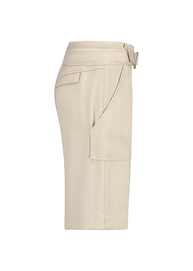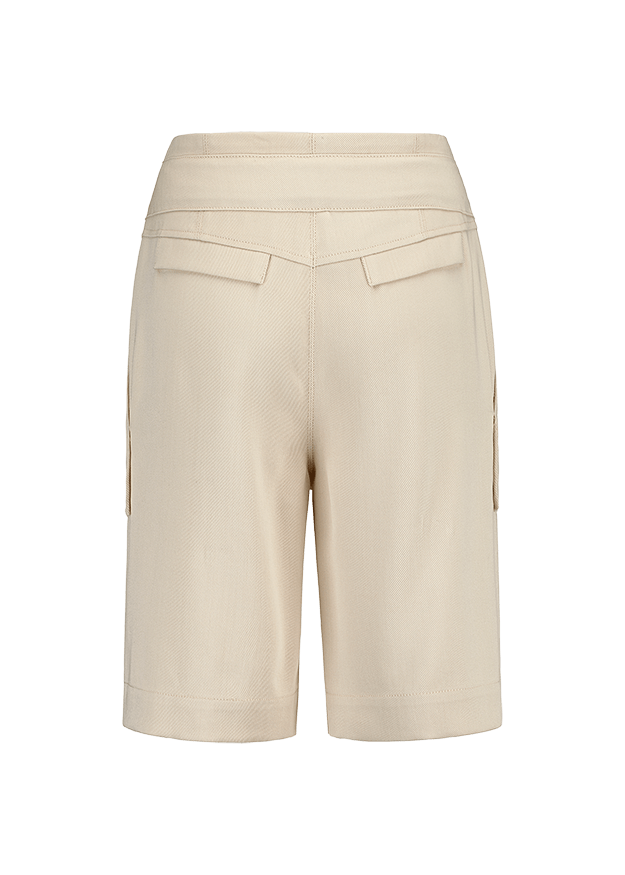 Шорты-бермуды из прочного твила. Большие накладные карманы спереди, узкие карманы с клапанами сзади. Модель прямого кроя с тканевым ремнём.