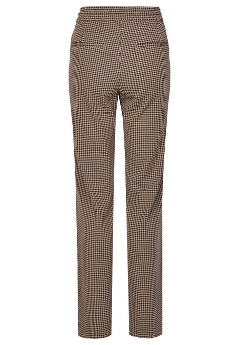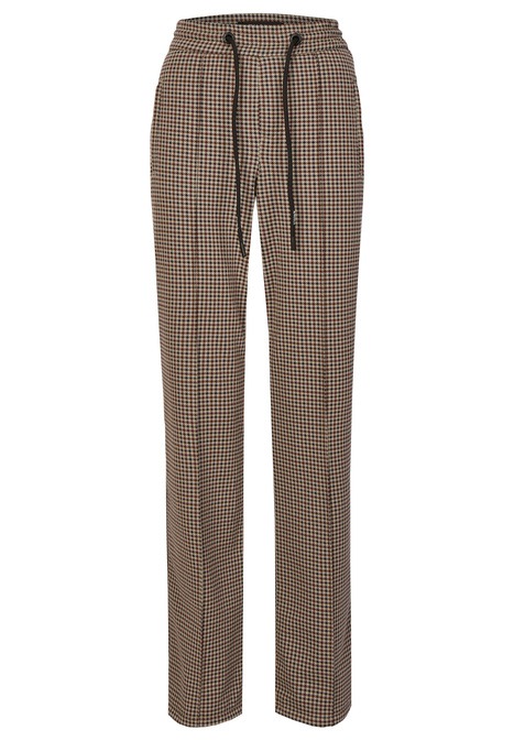 На сайте указаны российские размеры. Современные свободные брюки с модными декоративными швами. Легкая в уходе смесь материалов. Сплошной узор в клетку. Брюки удлиненные на шнурке.