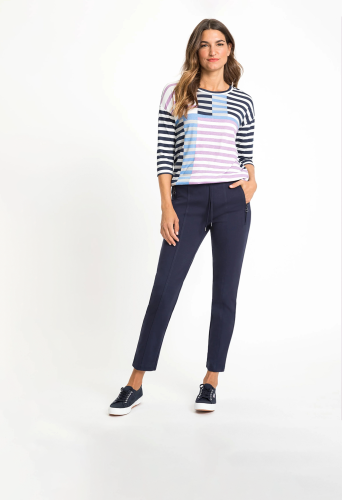 На сайте указаны российские размеры. Модель свободной заниженной посадки. Трикотаж джерси в сочетании с поясом на кулиске.