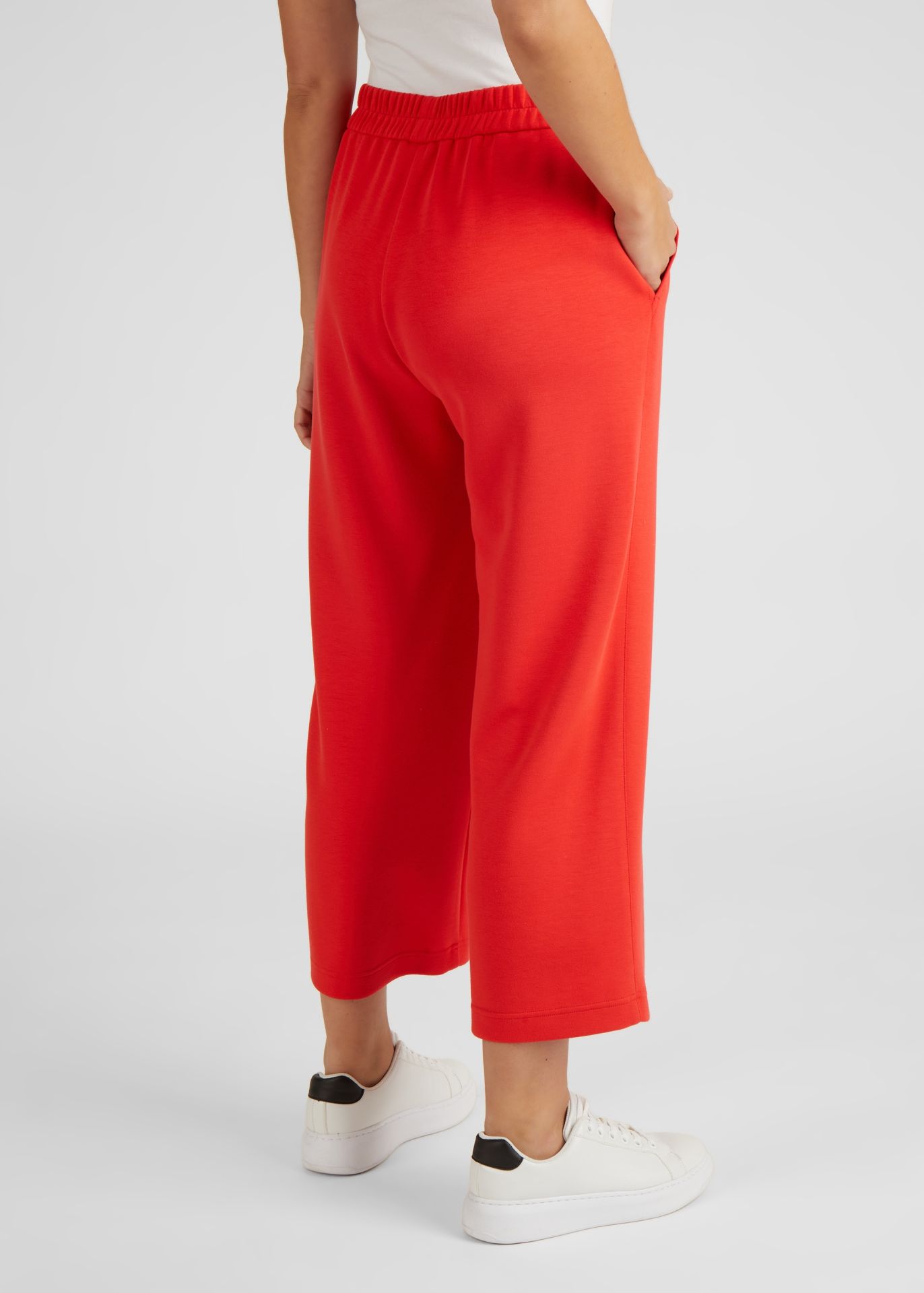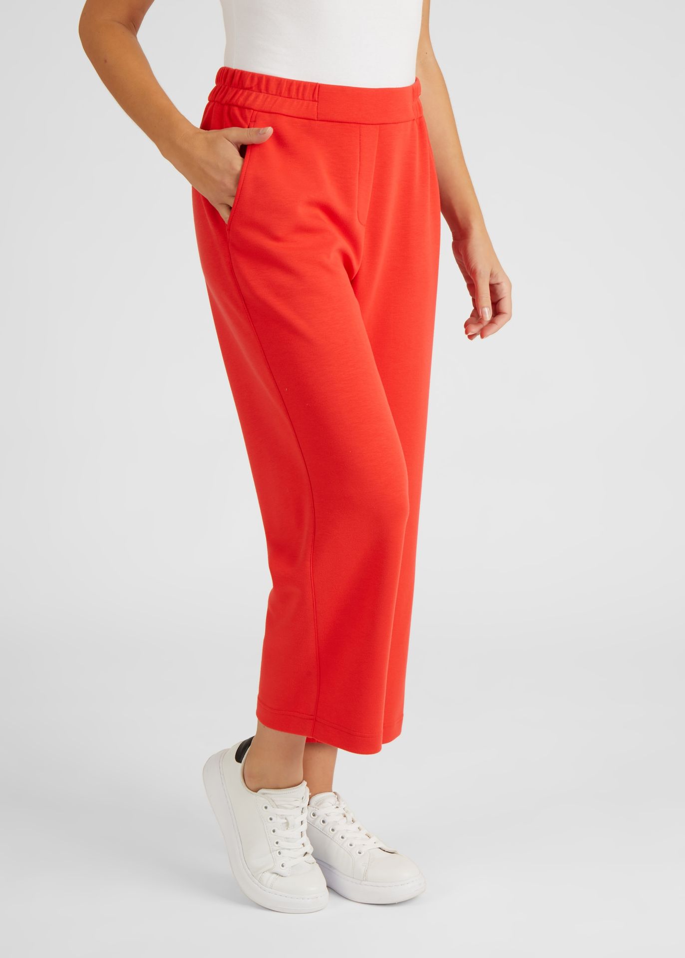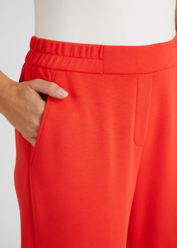 На сайте указаны российские размеры. Брюки из трикотажа имеют классический прямой крой, а эффектный цвет делает их по-настоящему привлекательными. Мягкая смесь трикотажа и вискозы придает модели особенно высокий уровень комфорта. Боковые карманы создают повседневный образ. Длина штанины по внутренней стороне для размера 46: 64 см. Рост модели 176 см.
