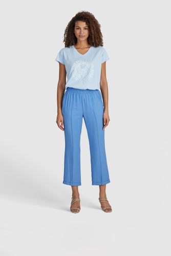 Брюки из структурированной вискозы имеют очень удобную посадку благодаря манжетам-джоггерам. Декоративные стеганые вытачки спереди делают образ неповторимым.