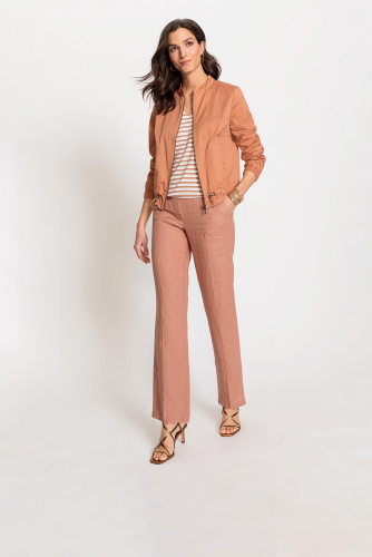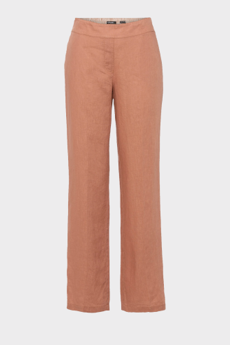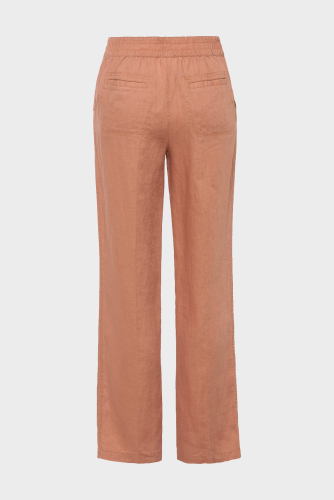 Брюки с передним и задним эластичным поясом, передними прорезными карманами и задними прорезными карманами. Изготовлено из любимого сезоном натурального волокна, чистого льна, обеспечивающего роскошный, дышащий комфорт и долговечность. Свободная посадка на бедре и посадка на естественной линии талии для эффекта удлинения ног.