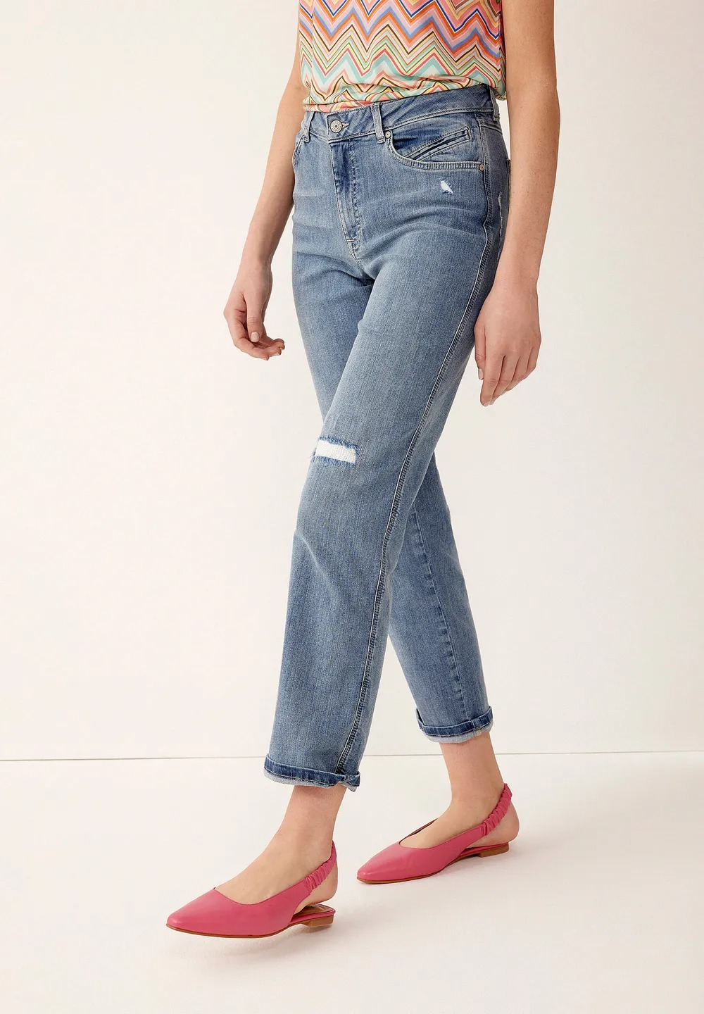 Джинсы свободной, повседневной формы с 5 карманами. Пояс и шлевки для ремня. Длина в размере 42 - 74 см.