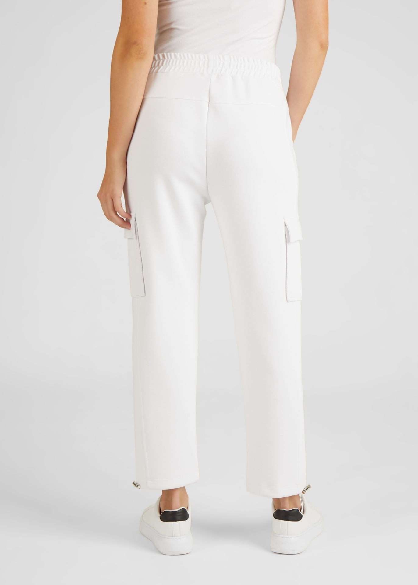 Спортивные штаны с эластичным поясом. Брюки можно варьировать благодаря эластичному поясу с кулиской, а кулиски на штанинах обеспечивают идеальную посадку. Накладные карманы на бедрах придают модели современный вид. Носите брюки небрежно с футболкой и кроссовками. Внутренний шов в размере 46: 67 см.