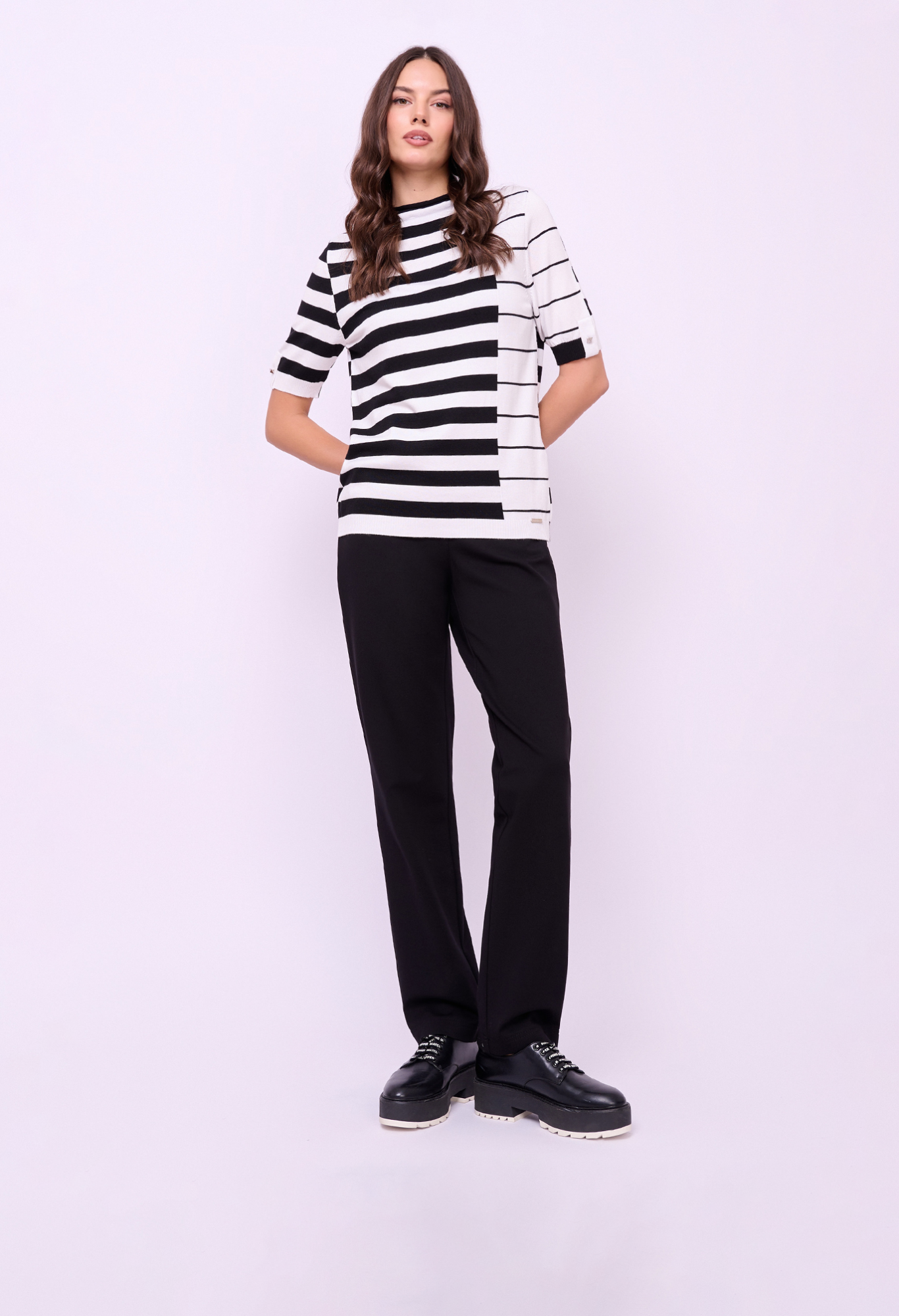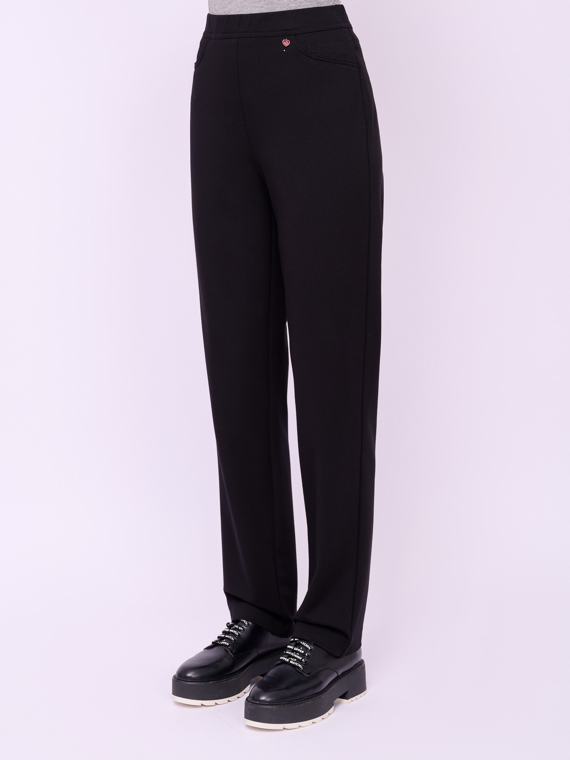 Детали: трикотажные брюки, плотный трикотаж, без застежки, пояс на резинке, без рисунка, карманы накладные, крой брючин зауженный, посадка средняя.