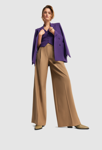 Брюки широкого кроя сразу бросаются в глаза и прекрасно сочетаются как с шикарным офисным нарядом, так и для небольших или больших мероприятий. Благодаря изысканному крою и высококачественной ткани широкие штанины ниспадают особенно красиво.