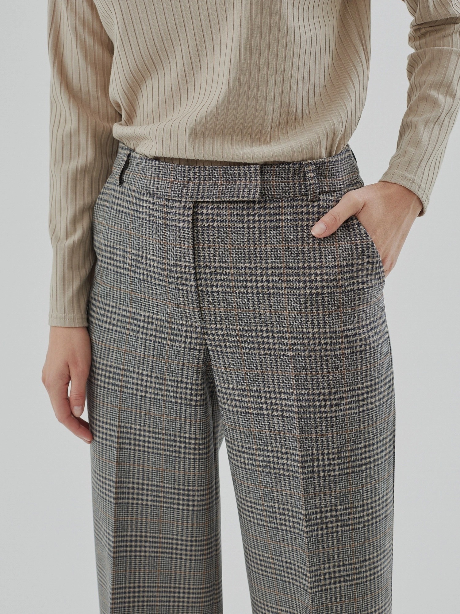 Классические прямые брюки средней посадки, со стрелками на притачном поясе с шлевками. Имеют два функциональных кармана по бокам и два прорезных кармана сзади. Брюки идеально сочетаются с жакетом из одного цветового блока. (арт. 1100110LS0190)