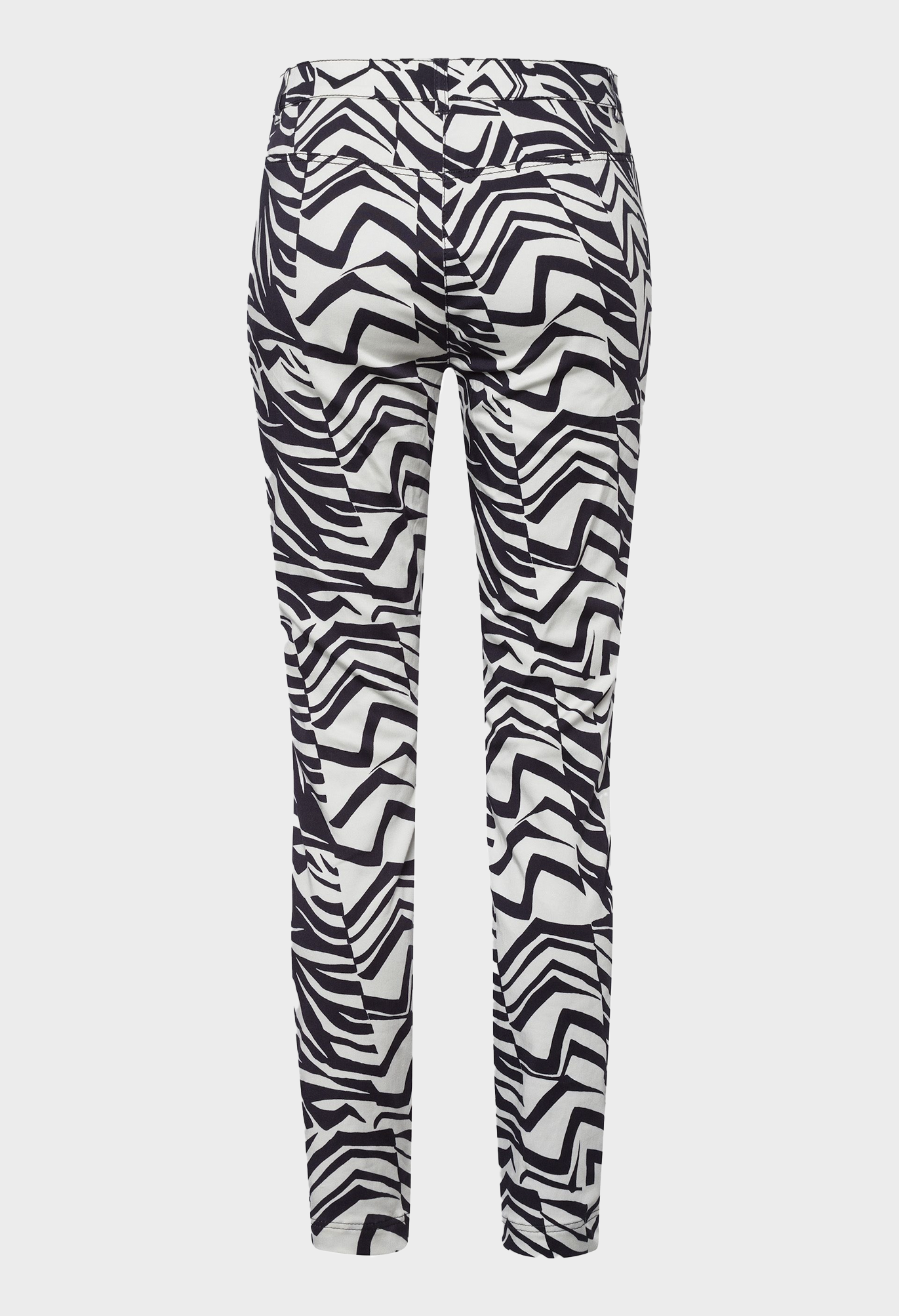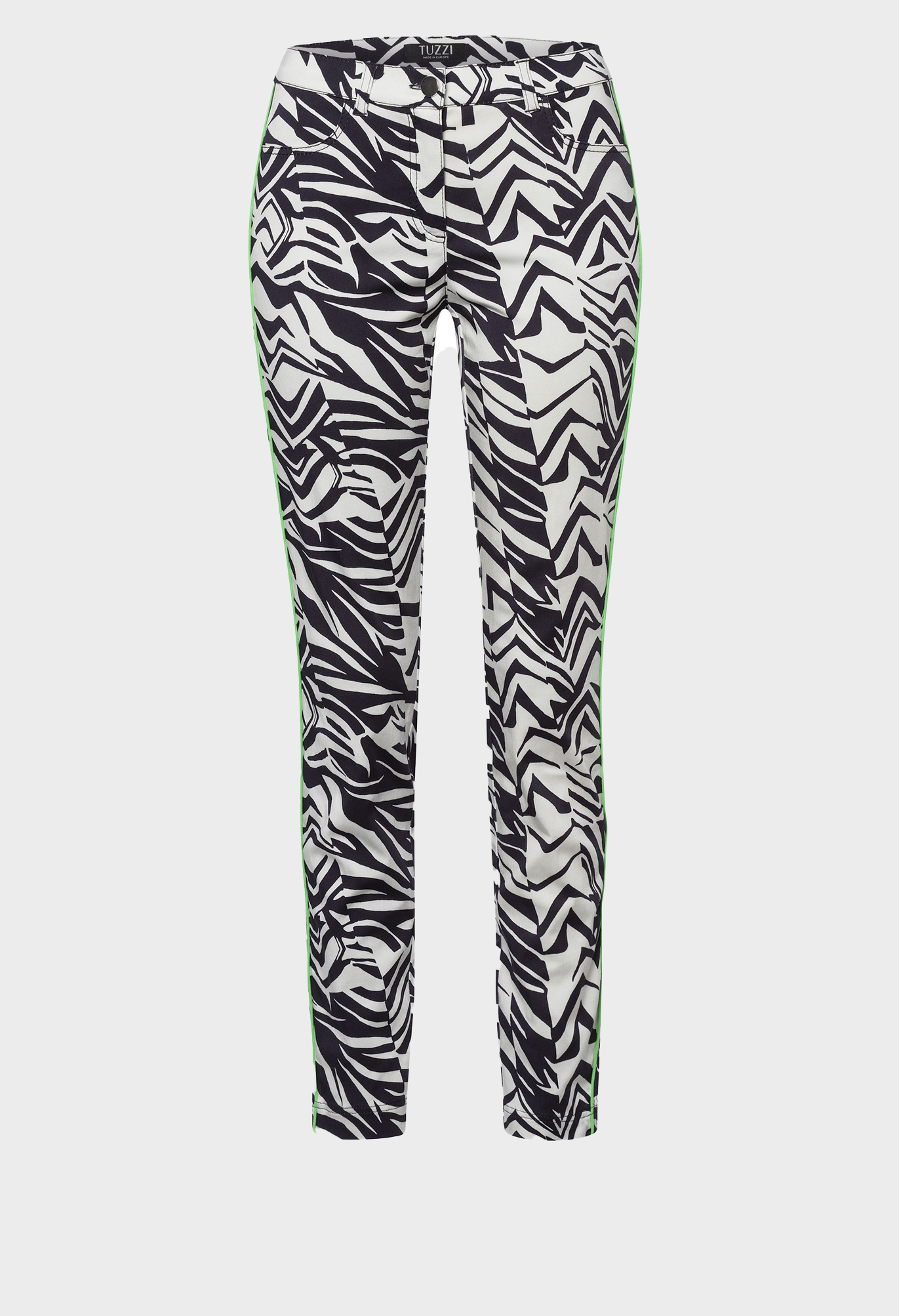 Брюки женские со сплошным узором и контрастной окантовкой по бокам. В этой модели привлекательный принт по всей поверхности дополнен контрастной окантовкой по бокам. Они добавляют красочной изюминки к эффектному узору и визуально утягивают ногу. Облегающий крой надежно облегает фигуру благодаря эластичности. Длина - 72 см.
