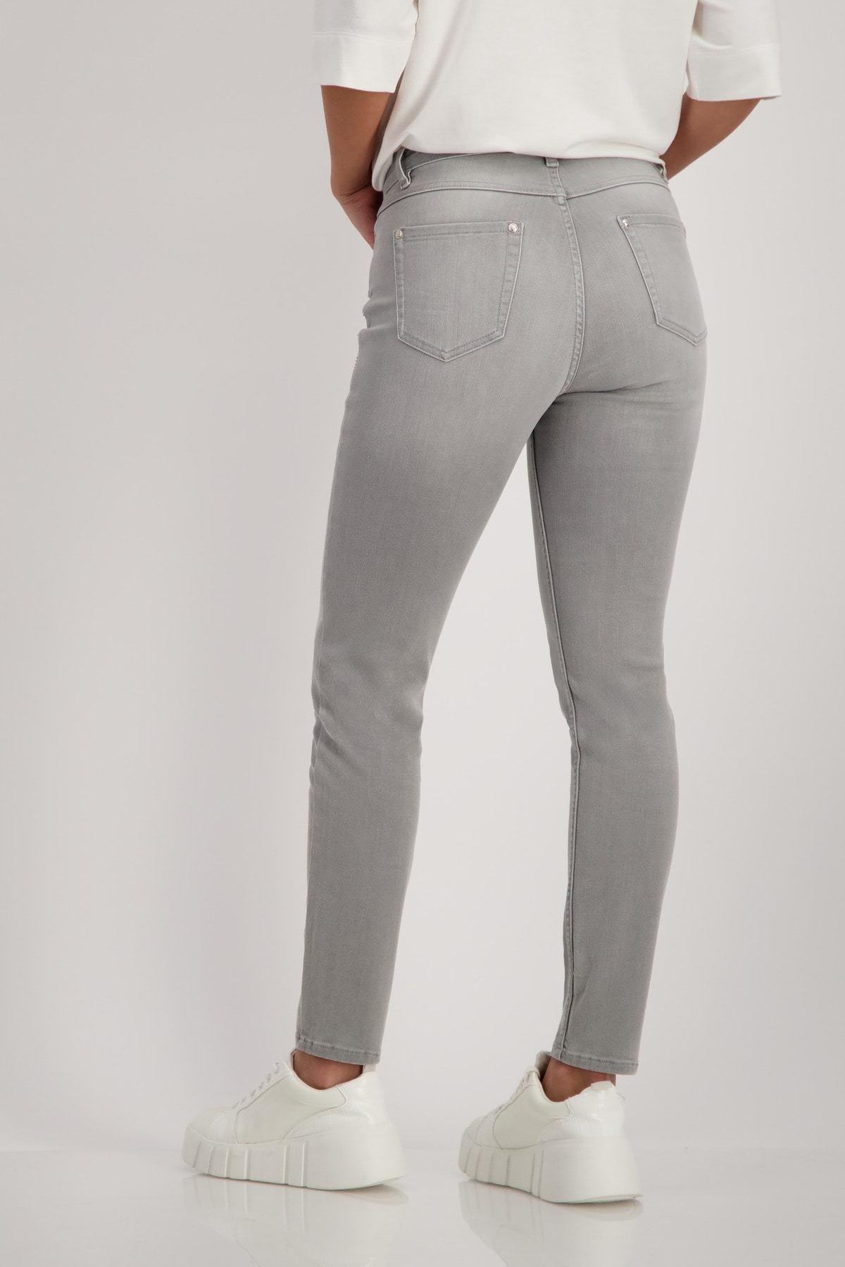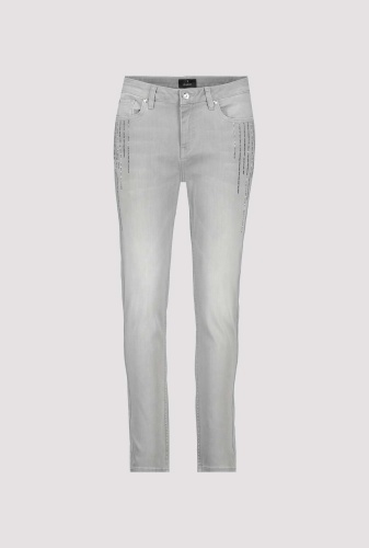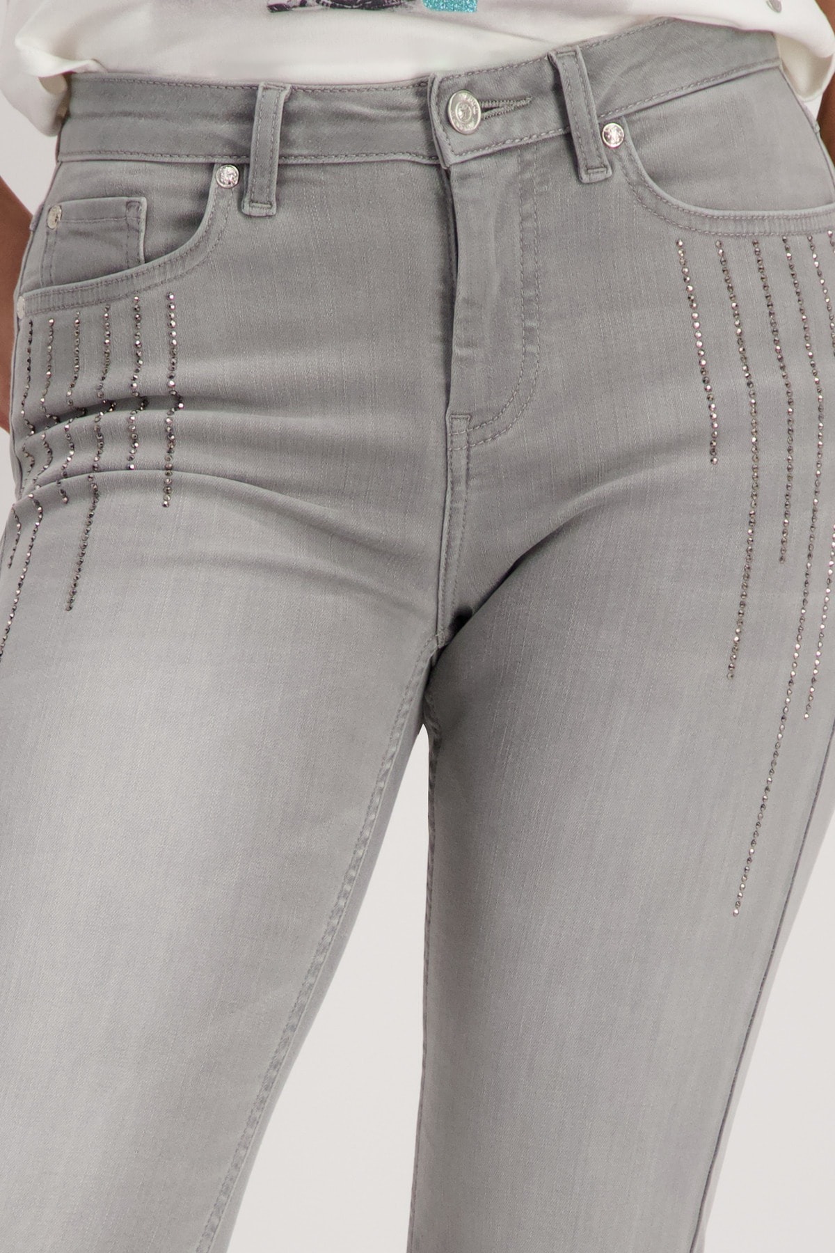 Элегантные джинсы с полосками со стразами. Эластичная смесь хлопка. Нормальная высота талии. 5-карманный стиль. Длина внутренней штанины для всех размеров 74 см.