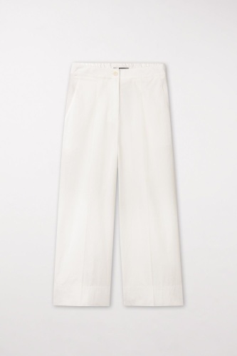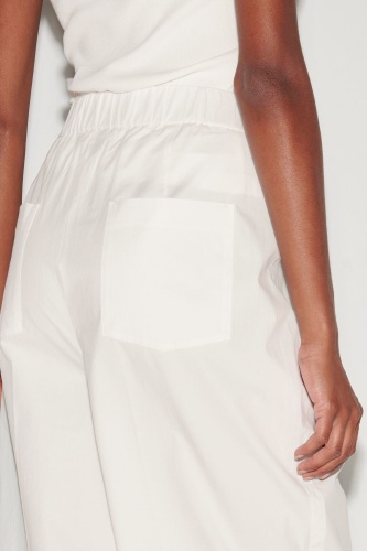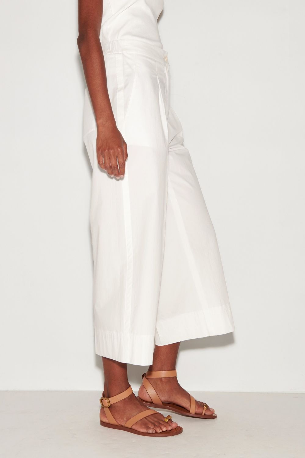 Укороченные широкие брюки из легкого эластичного габардина со складками. Брюки имеют четыре кармана и удобный пояс на частично эластичной резинке.